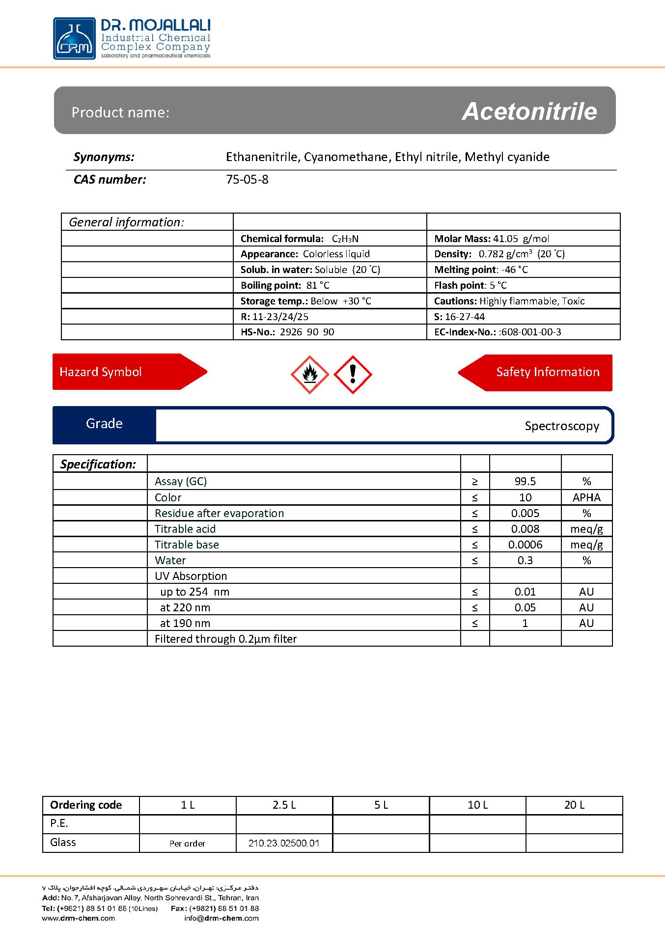 | Solub. in water: 1000 g/L | Melting point: 18.5 °C |