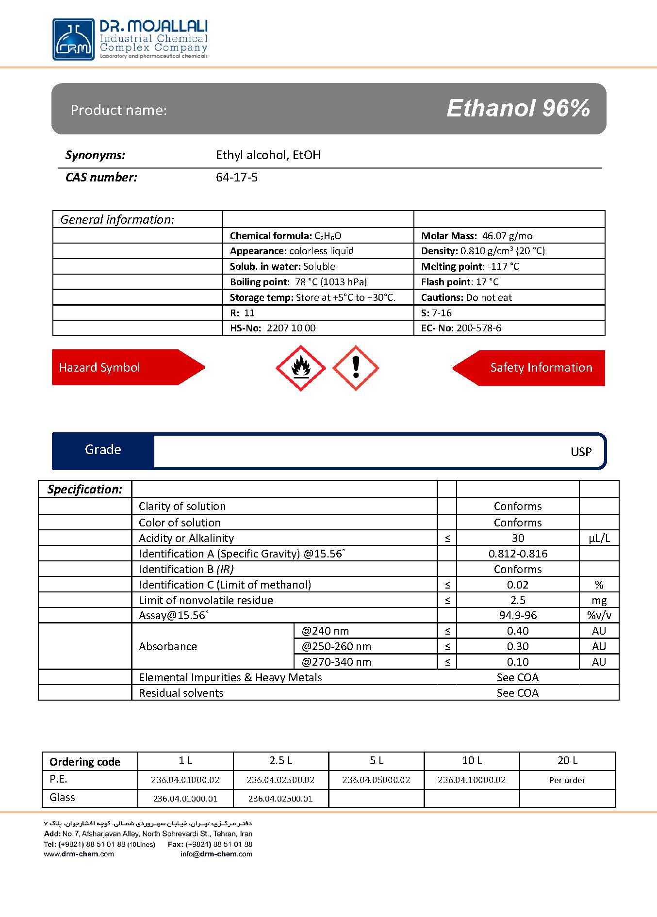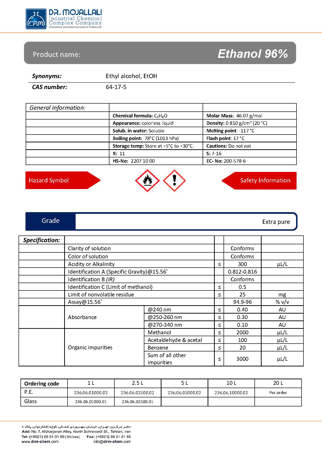 | Boiling range (@ 80-82 °C) | ≥ | 95 | % |