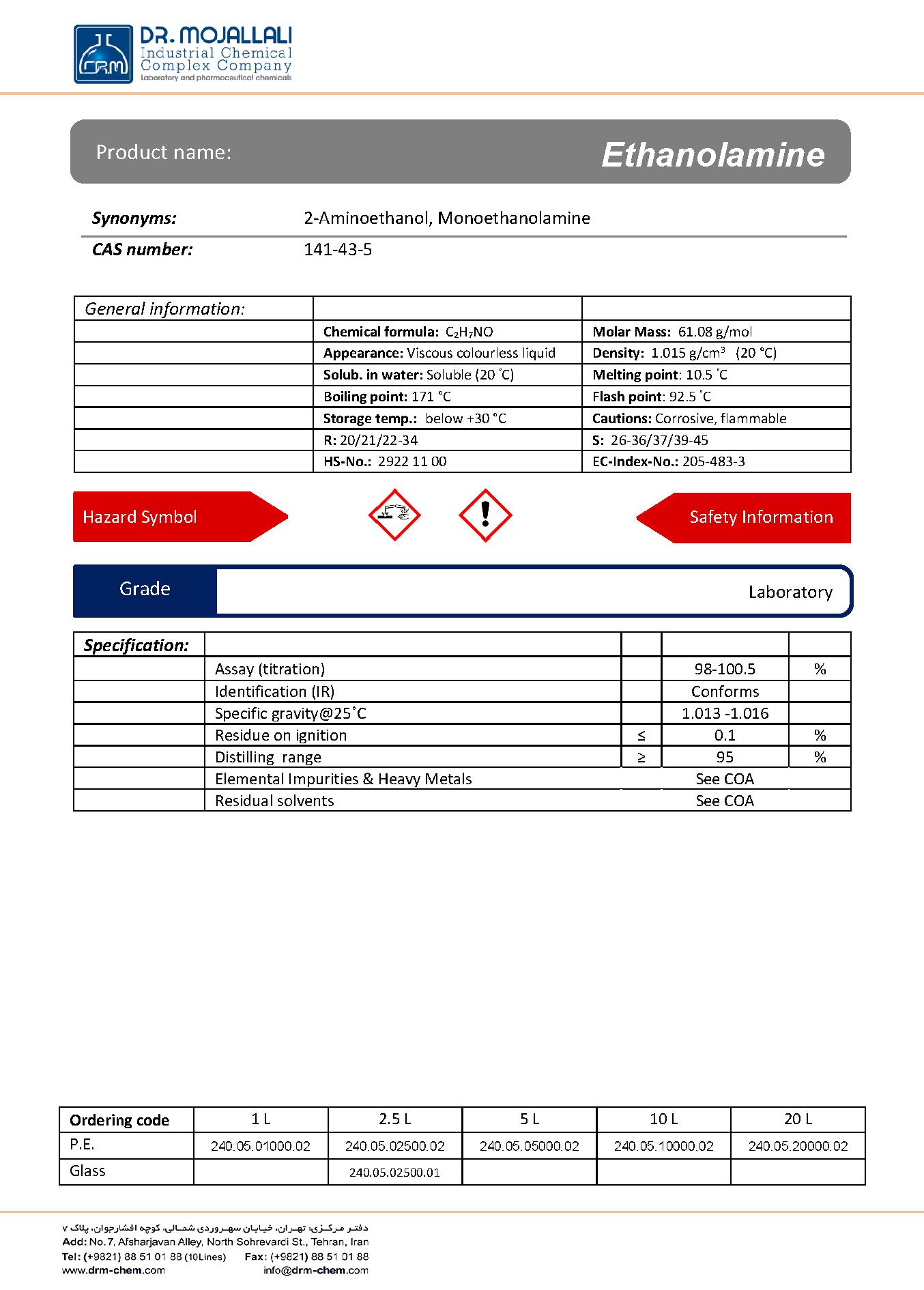 | Ordering code | 10 g | 25 g | 50 g | 100 g | 250 g |